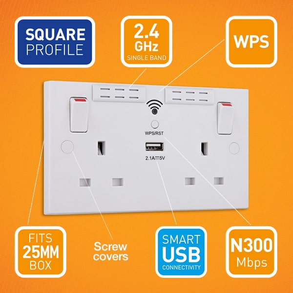 The BG Electrical Wi-Fi Range Extender Socket (922UWR Wi-Fi Socket Range Extender) helps you eliminate dead spots and expand your Wi-Fi coverage. Plus, you can even charge your favourite electronic devices using the built-in USB socket.