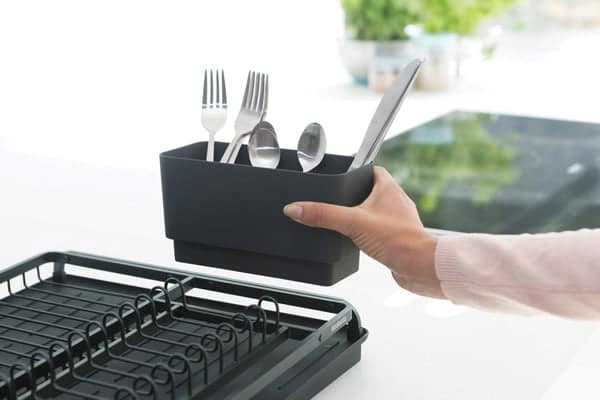 This beautiful and clever dish drainer from Brabantia offers enough space for all your plates, bowls, glasses and cutlery. The water from the drip tray is fed directly into the sink – your worktop remains dry.