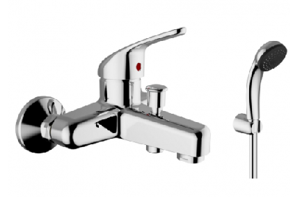 CHROME BATH MIXER COMPLETE WITH SHOWER HEAD AND PIPE