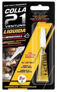 Colla21 GEL is a cyanoacrylate, thixotropic formula, high–strength and fast–setting adhesive that can
