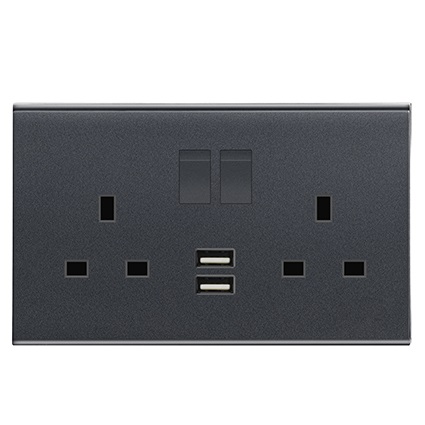 DURAGREEN BLACK DOUBLE SOCKET OUTLET WITH 2 USB