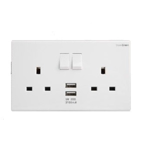 DURAGREEN WHITE DOUBLE SOCKET OUTLET WITH 2 USB