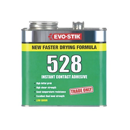 EVO-STIK 528 Contact Adhesive is intended for use in interior situations. It may also be used in exterior situations where it can be protected from the weather (sun and rain) e.g. bonding laminates. The new improved (toluene free) formulation has a lower odour and is clearer.