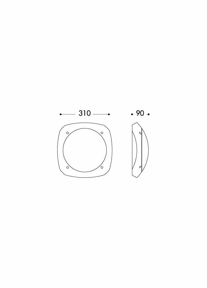 Square bulkhead lamp made of shockproof resin material, UV-rays stabilized, rust and corrosion-free. Suitable for wall and ceiling installation. Bulkhead includes E27 bulb holder (bulbs not included). Insulation class II, Protection rating IP66.