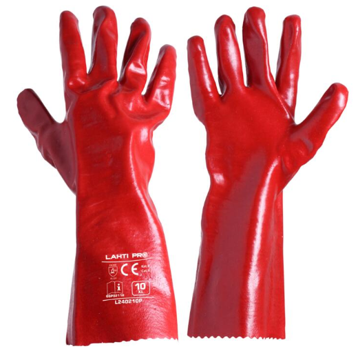 GLOVES PVC LONG RED L240210P, 12 PAIRS, "10" LAHTI