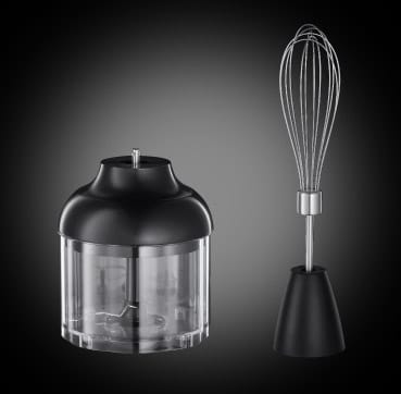 A delicious mix of form and function, the three-in-one hand blender combines mixing, whisking and chopping in a choice of two speed settings. Stylish black matt finish is complemented by flashes of red for a fiery finish.