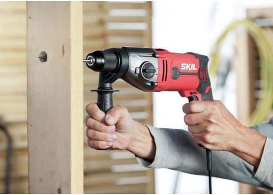 The SKIL 6745 hammer drill with very powerful 1050W motor is ideal for drilling in brick and masonry, as well as for drilling in wood, metal, ceramic and plastic. It has two gears that you can use for either fast drilling or for tough drilling and screwdriving. The hammer mechanism is for drilling in masonry and the hammer mode can be switched off for regular drilling and screwdriving. This tool has a 13-mm metal single-sleeve keyless chuck with lock that prevents the bits from slipping. The automatic spindle lock allows easy accessory changing. The variable speed switch with speed pre-selection gives versatility and control of your job for the best results. For your convenience you can lock the trigger for continuous drilling and driving. This hammer drill has a range of handy features, for example the reversing function. This comes in handy for instance when loosening or removing screws. What’s more, the ergonomic design with softgrip ensures extra working comfort. The SKIL 6745 GA is supplied in a compact carrying case with a set of 5 bits for drilling in wood, 5 bits for drilling in masonry, a side handle and a depth gauge.