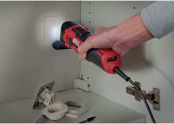 The SKIL 1491 is a powerful 300W multi tool with variable speed for the best results in various materials. Good visibility of your work is assured thanks to the LED light. The included depth stop, which is adjustable up to 60 mm, prevents quick wear-out of accessories and accidental damaging of materials underneath your workpiece. By exchanging the supplied accessories, you can use this multi tool for a wide range of DIY jobs like sanding, sawing and cutting. The multi tool is compatible with widely available ‘Starlock’ basic accessories and ‘OIS’ accessories, so you can always find the right accessory for your job. To work cleaner when you’re sanding, you can connect this tool to the supplied vacuum cleaner adapter that fits most standard-size vacuum cleaners. What’s more, the ergonomic design with softgrip ensures extra working comfort. The SKIL 1491 DB is supplied with 9 sanding sheets, a sanding baseplate, a depth stop, segment saw blade, plunge cut blade and vacuum cleaner adapter.