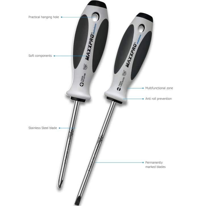 WITTE Werkzeuge MAXXPRO Stainless screwdriver blades are “Ice-Hardened” for excellent durability in heavy duty industrial use. Stainless steel meets stainless.